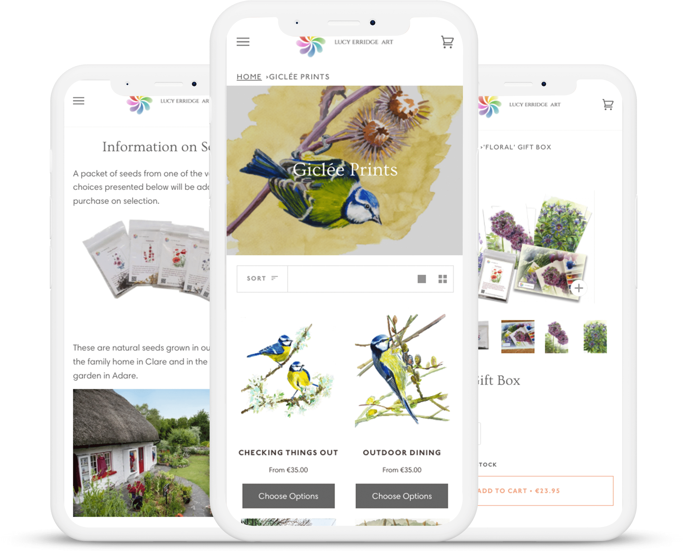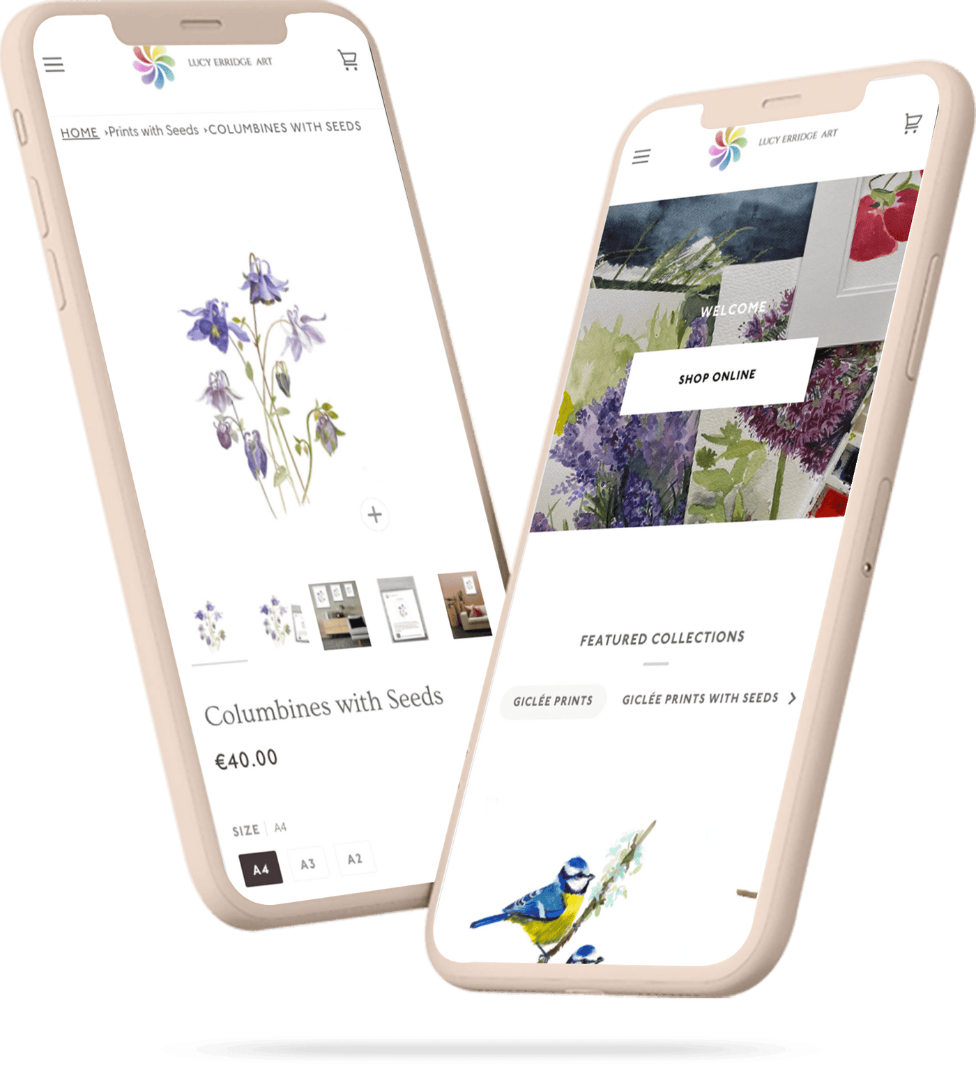 With Lucy's delicate watercolours, it was important for her online store to exhibit them in a sophisticated manner, just like in an art gallery.