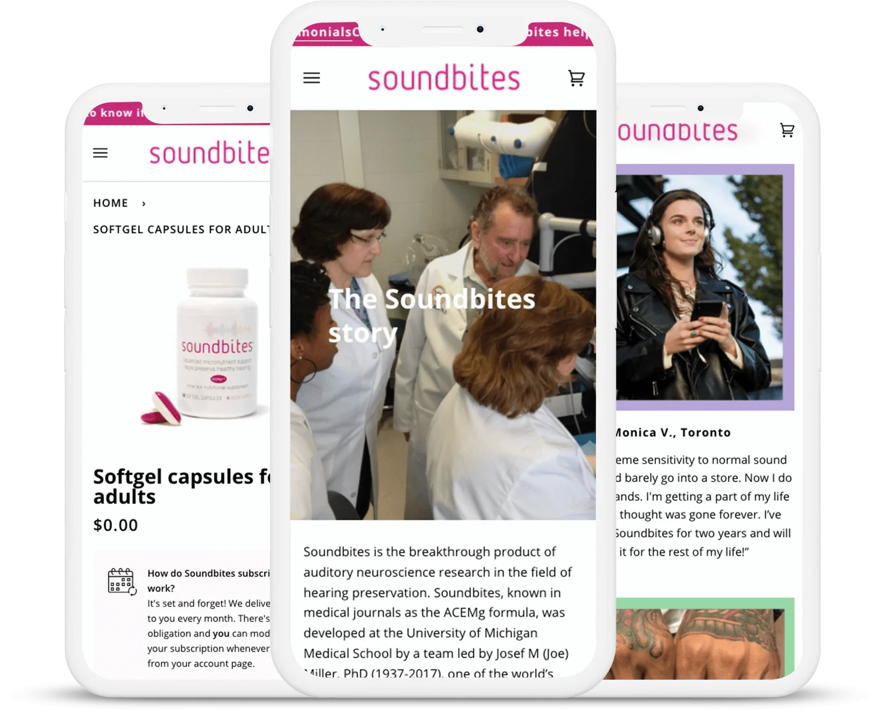 The new Shopify store is simple, functional and interactive. And yet it supports the sale, subscription and worldwide delivery of a hearing biology breakthrough changing lives worldwide.